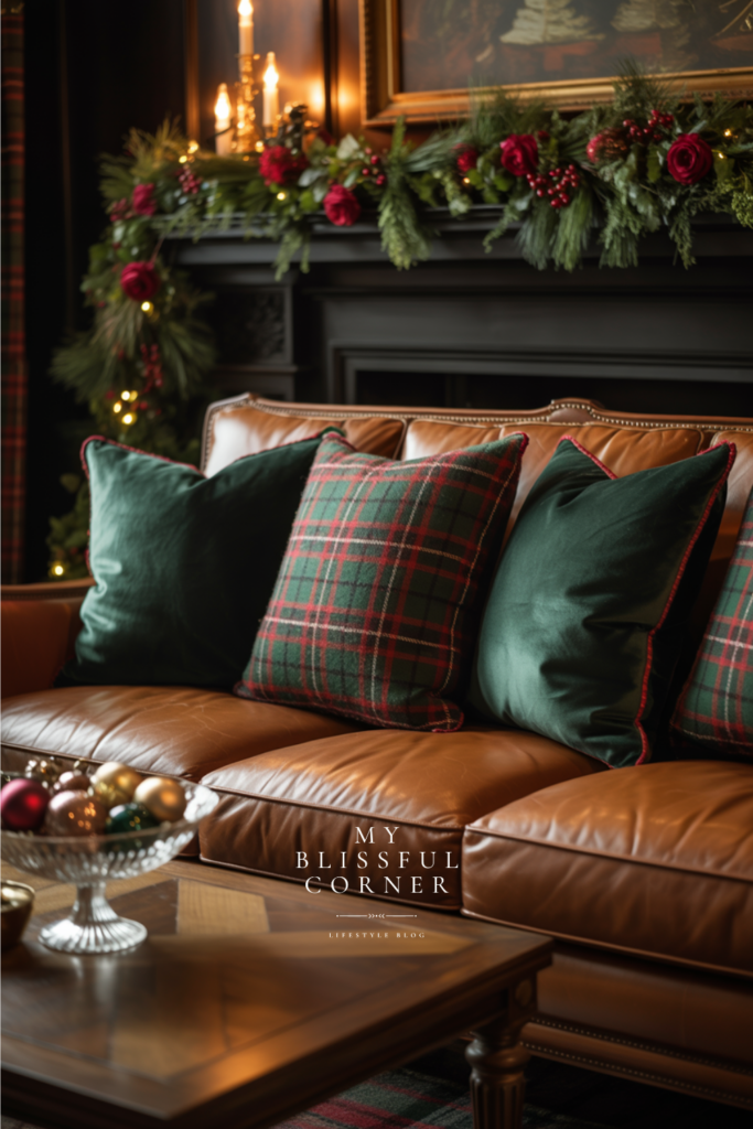 Even a few well-placed florals, like red roses in a crystal vase, or a small tartan throw can tie the whole look together beautifully.